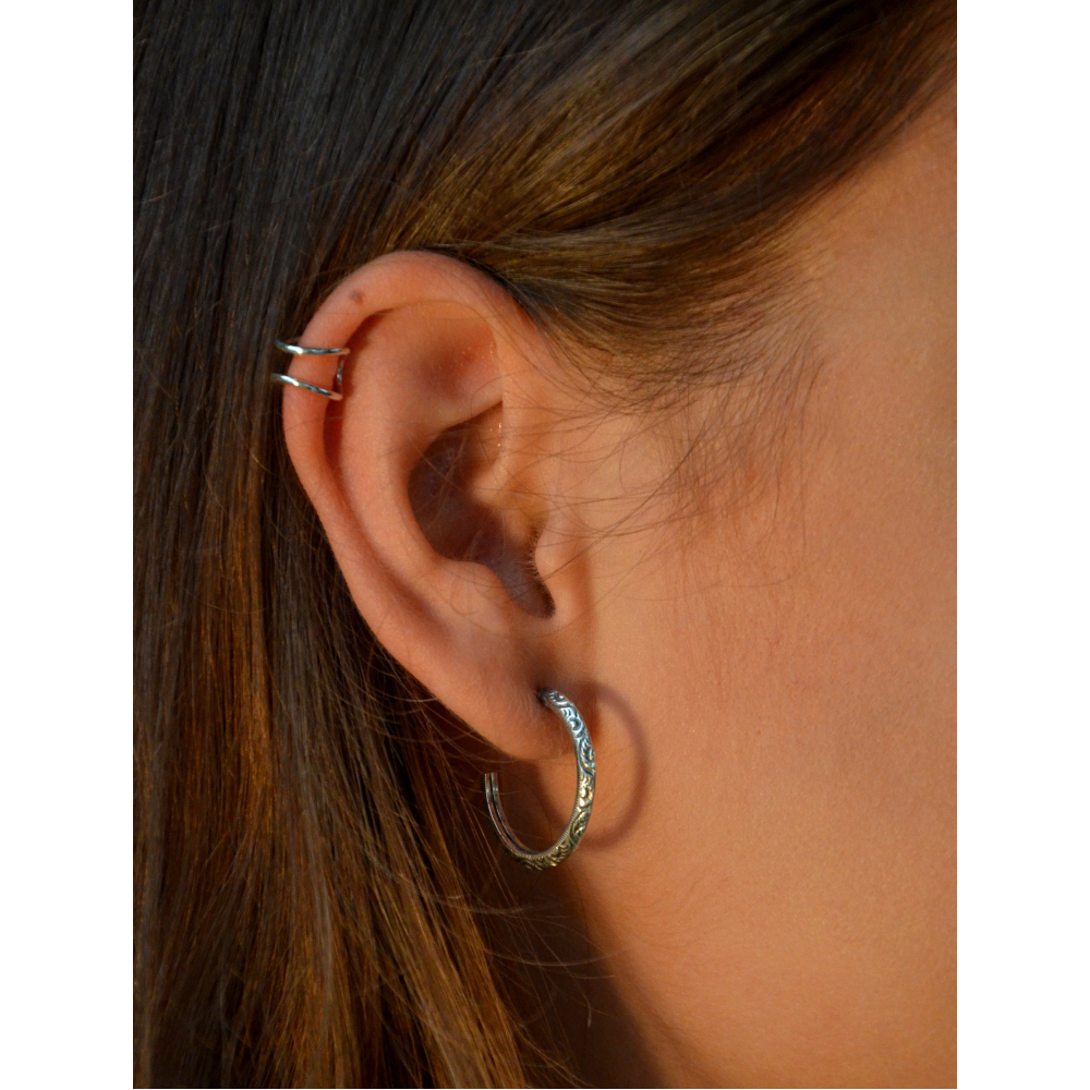 Laat je betoveren door de elegante schoonheid van de Blossomia oorringen uit de Bella Terra-collectie. Deze zilveren oorringen van 3 cm in doorsnee zijn geïnspireerd op het mooiste van moeder natuur en hebben een verfijnd floraal patroon dat je look subtiel verfraait. Perfect voor dagelijks gebruik of om een speels, natuurlijk accent aan je outfit toe te voegen.