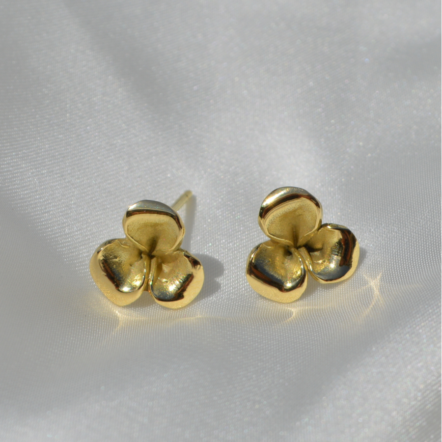 Deze elegante oorstekers uit de Yuveliniya collectie zijn vervaardigd uit 14 kt geelgoud en hebben de verfijnde vorm van kleine klavertjes. Dankzij hun subtiele en tijdloze ontwerp zijn ze perfect voor dagelijks dragen of om stijlvol te combineren met andere sieraden. Een chic en luxe sieraad dat elegantie uitstraalt.