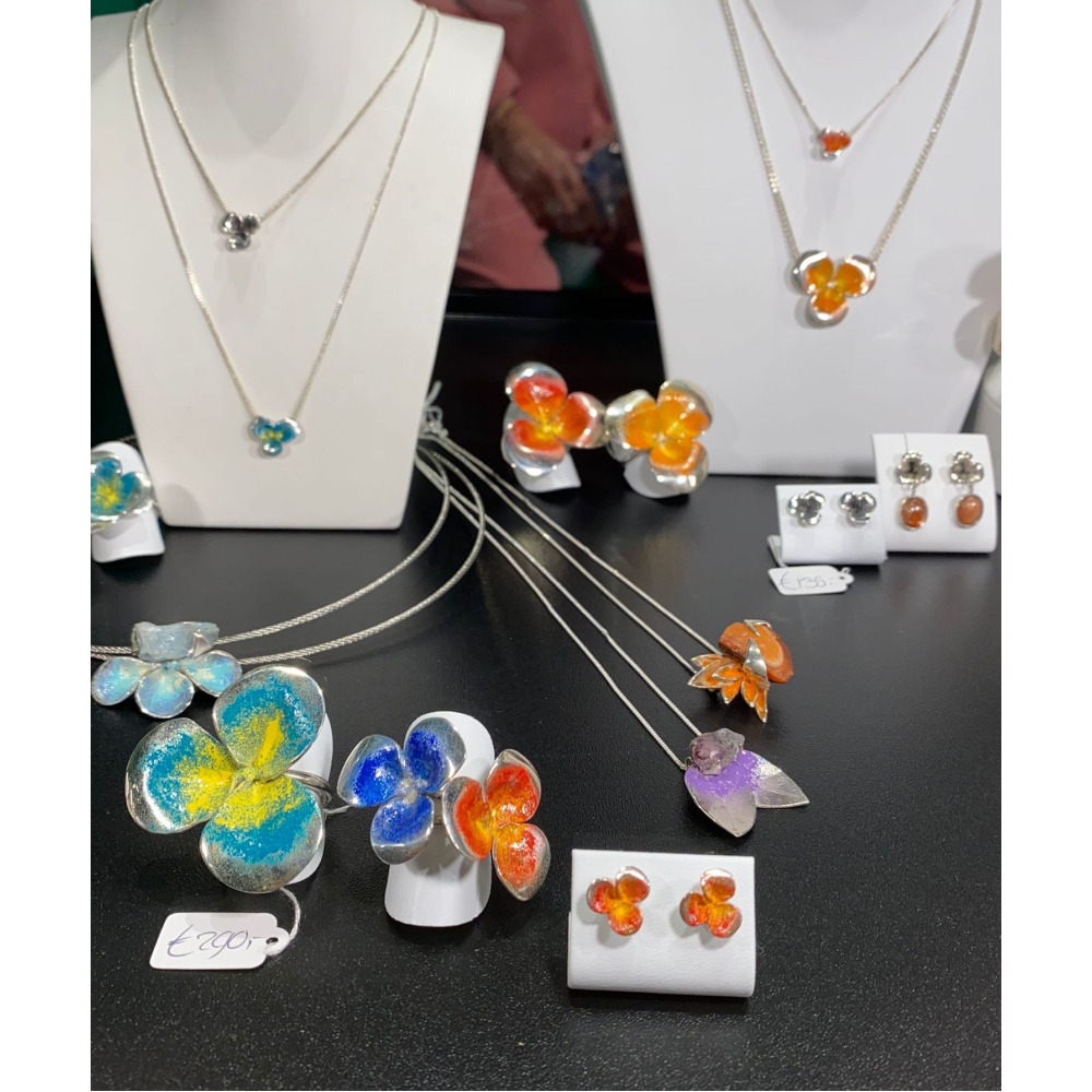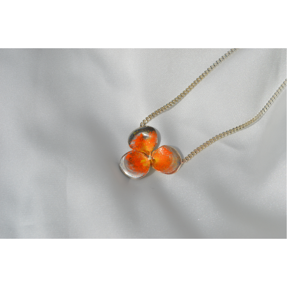 Dit collier heeft een bloem van 2,5 cm en wordt volledig met de hand geëmailleerd, waardoor ieder sieraad uniek is en subtiel kan afwijken van de foto.