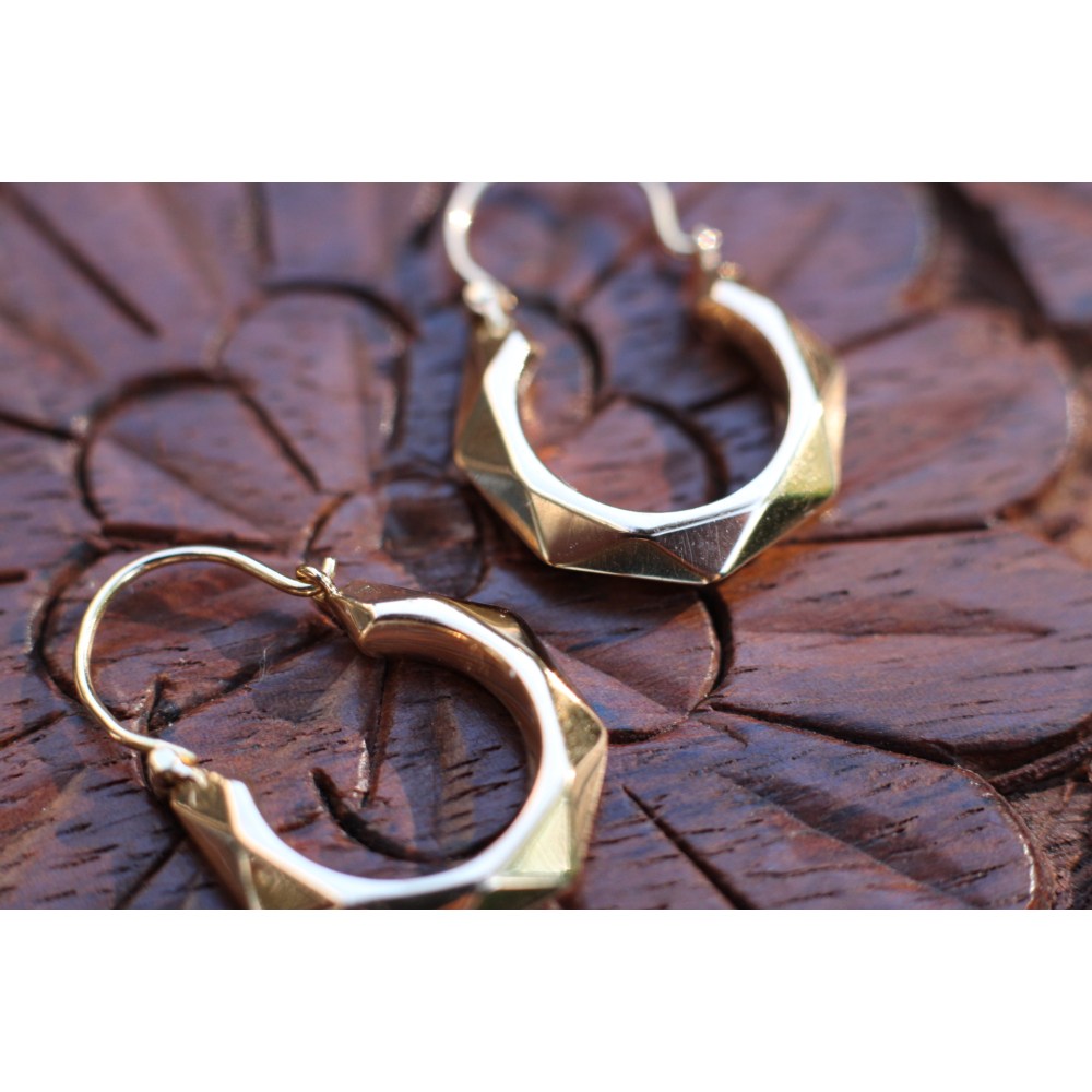 Harper oorringen in 18 kt geelgoud, met glimmende facetten die de uitstraling van de oorbellen extra benadrukken. Makkelijk te combineren met andere oorbellen voor een persoonlijke, speelse stijl.