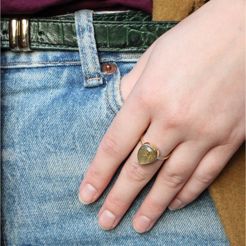 Deze schitterende 14 karaat geelgouden ring is gezet met een unieke rutielkwarts, waarvan de gouden naalden prachtig harmoniëren met het warme goud van de ring. Het samenspel van glans en natuurlijke structuren maakt dit sieraad tot een bijzonder en elegant stuk dat zowel karakter als verfijning uitstraalt.